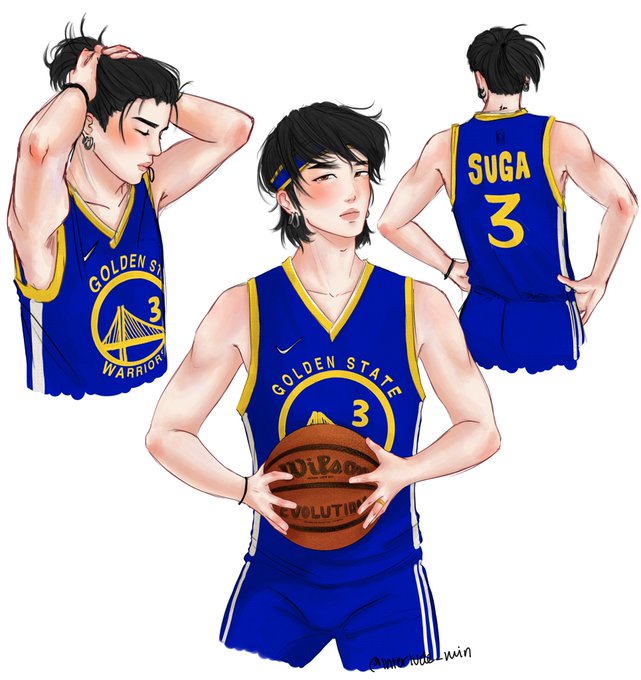 291 1540 Yoongi playing basketball with his long hair…..yes🏀 #yoongifanart #yoongi #SUGAatNBAJapan 22/09/29 22:36