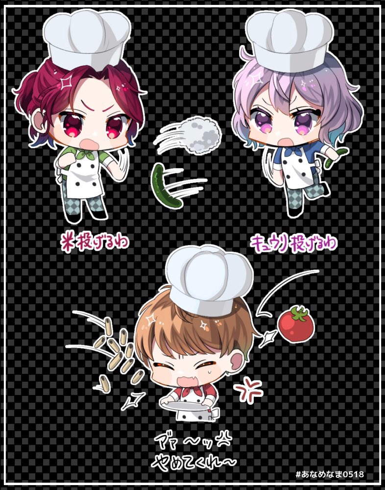 🍎🍥食材の扱いひどかったし🐏ぶつけられまくってて笑った #あなめ絵