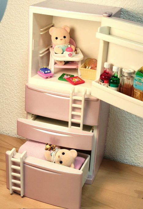67 608 🐻夏の間ここに住むね😊 🐻熱帯夜も大丈夫。うるおい野菜室でお肌にもいいんだ☺️ #シルバニアファミリー 23/07/20 15:02
