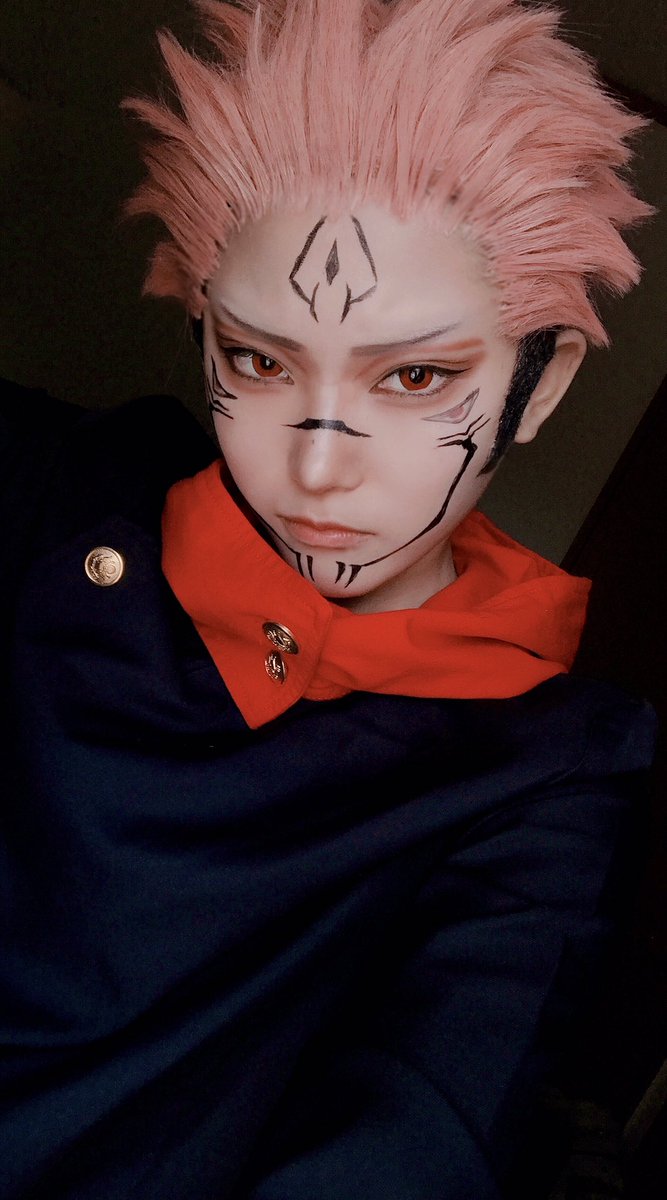 ⚠️宅コス 宿儺も加工した👅毎回メイク変わるし、顔の模様描くの難しいけど楽しい❗️✌🏻