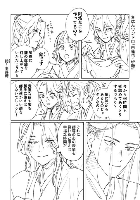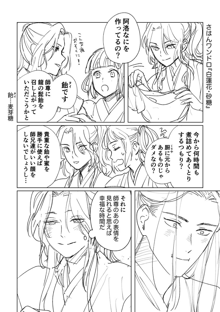 #SVoneドロ お題「白蓮華・砂糖」 砂糖じゃなくて麦芽糖ですが😂線が汚いので薄目で見てください
