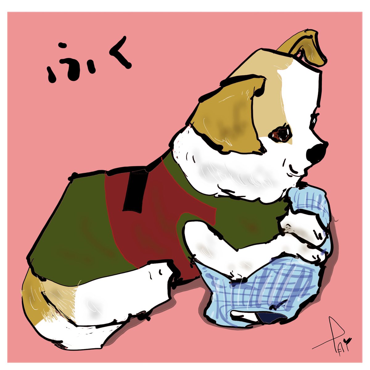 🐶只今プチブレイク中‼️ 『犬キューピット夢丸と呪犬』 ファンへの感謝祭🥰 ✨ウチノコイラスト✨ 『ふく』 これ取っちゃダメ‼️ #犬好きさんと繋がりたい #猫好きさんと繋がりたい #読書好きな人と繋がりたい #イラスト好きさんと繋がりたい #保護犬 #保護猫