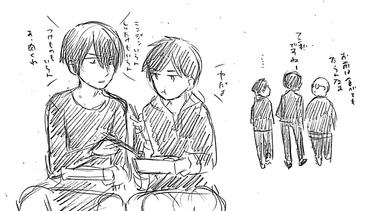 2 1 本編後にくにおかくんがまつばらくんとアルバイトする話らくがき。※バレ有。(まつばらくんのお言葉はわいの感想なのでまつばらくんはこんなこと言わないだろうけど言えるとしたらまつばらくんだけなんだ…ふたりの口調は全くわからん) 21/10/31 20:55