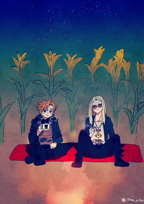 #tsdy版ドロライ 「焚き火」とうもろこしを直火で炙ろうとしてアッツ~となる二人です