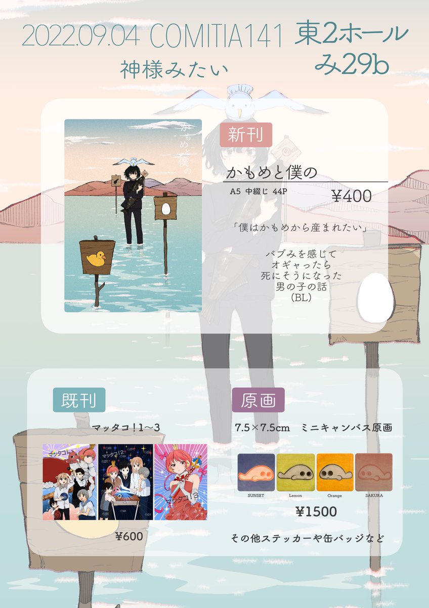 2023年5月5日に東京ビッグサイト東4・5・6ホールで開催予定のイベント「COMITIA144」へサークル「神様みたい」で申し込みました。 #COMITIA144 あとサークルカット新調しました!