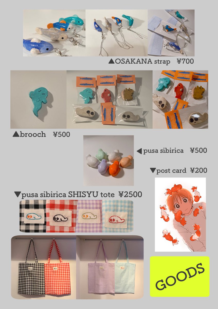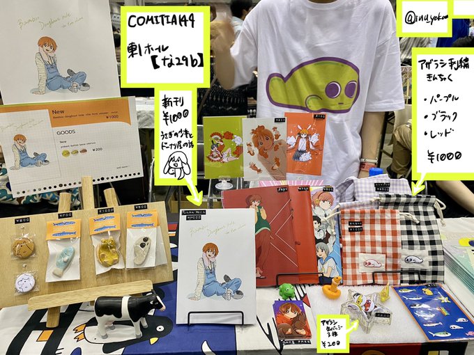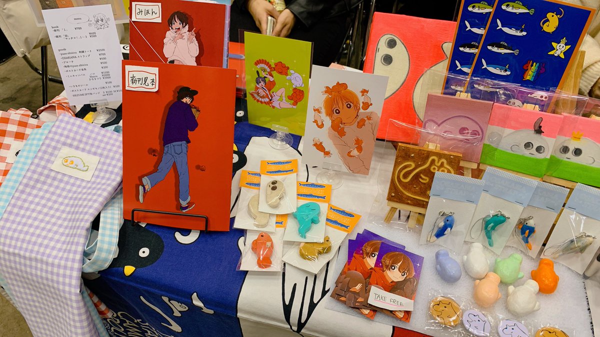 2/19 コミティア143お品書き 新刊のイラスト本をはじめ、陶器のグッズやトートバッグ等の新グッズを持っていきます!その他、ミニキャンバスやシール、缶バッジなどもあります!【東6ホール た04b】でお待ちしております!🦭✨ #COMITIA143 #コミティア143