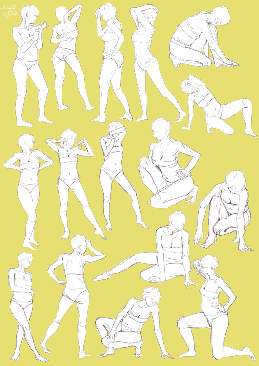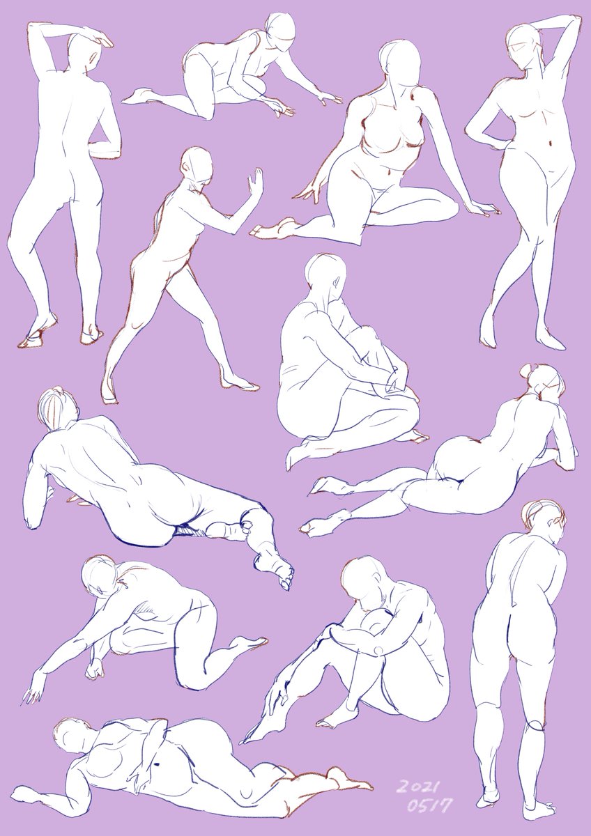 2 19 #おはクロ 9日目 今週忙しくて全然できてなかったクロッキー!着衣だと一気に難易度上がる感じがします… 最後のポーズは奥行き消えちゃったけど好みだったから線画起こしてみた。強弱が難しい&着色は途中で時間切れ 21/05/27 16:57
