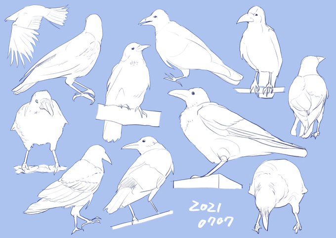 1 14 #おはクロ 20日目 カラス!鳥ってほとんど描いた事なかったので新鮮でした 21/07/07 14:34