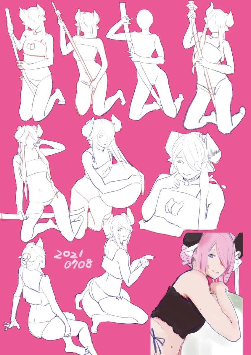 0 12 #おはクロ 21日目 コスプレクロッキー、頭がこんがらがる~~ 下段のポーズがどれも好きでした 21/07/08 11:29