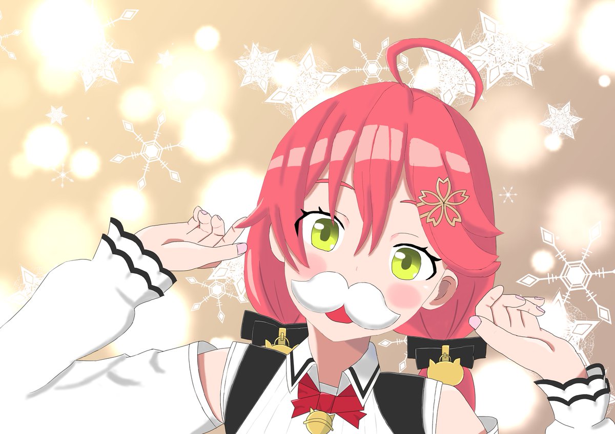 3 25 メリークリスマスだにぇ! 初めてのみこちファンアートはサンタ衣装でつけひげしたみこちを見れなさそうだから自給自足するっていう理由で描きました。 #miko_Art 21/12/25 14:25