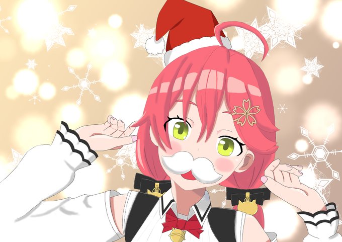 メリークリスマスだにぇ! 初めてのみこちファンアートはサンタ衣装でつけひげしたみこちを見れなさそうだから自給自足するっていう理由で描きました。 #miko_Art