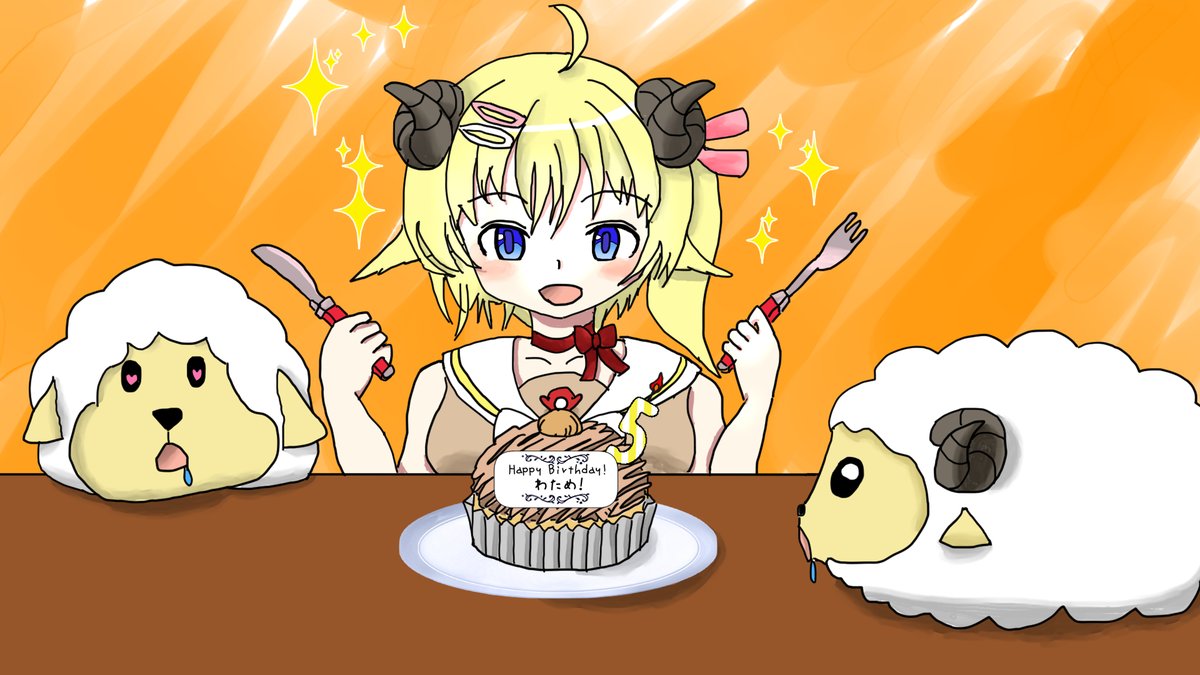 遅刻でごめんなさい! わためぇ誕生日おめでとー! #つのまきあーと #わための誕生日2021