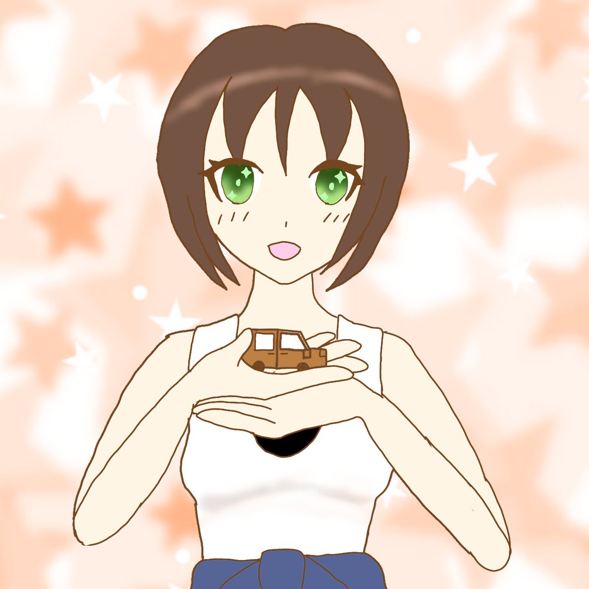 #モバマス版深夜の真剣お絵かき60分1本勝負 ミニカー貰って嬉しい美世ちゃん。ちょっとオーバーしてもこのクオリティーな下手さでも頑張りはした……したんだ……上手く描けなくてごめん美世ちゃん……