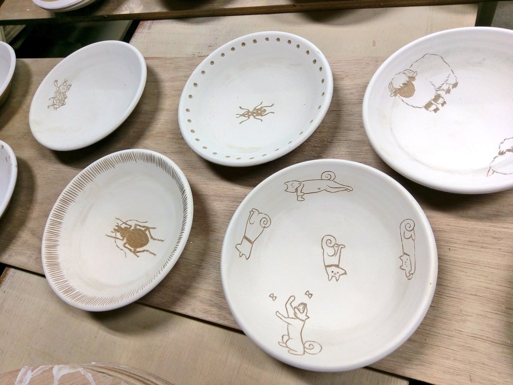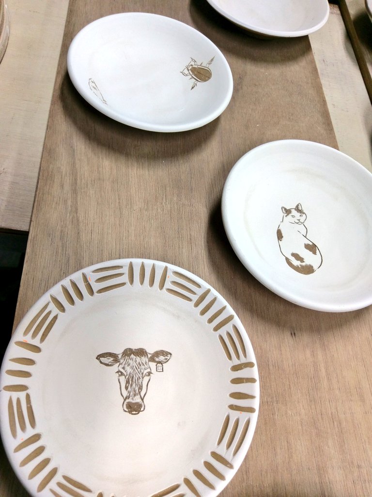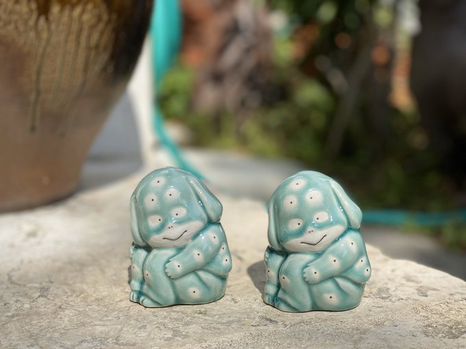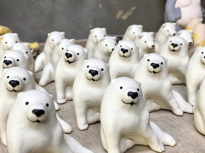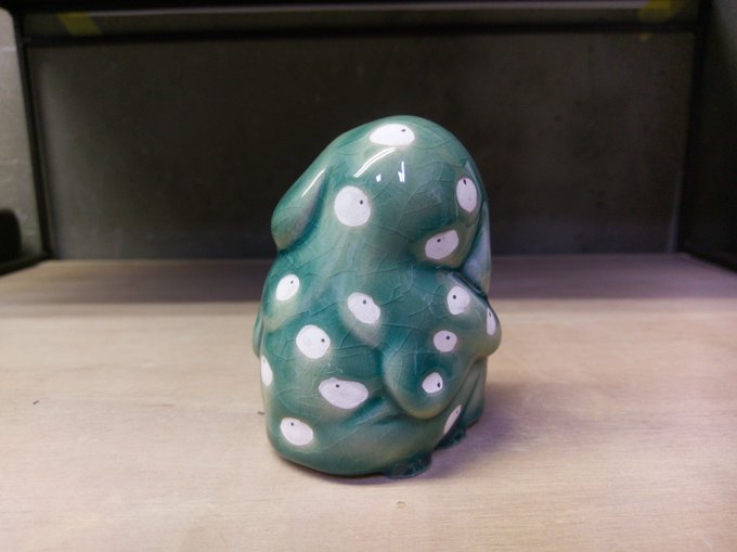 331 749 百目無事に窯から出てきました! 土と釉薬の相性的に貫入があまり入りませんでしたが、今までより白い土に変えてみたので優しい色合いになりました。 #wf2020w #水木しげる #真空土練鬼 20/02/03 13:57
