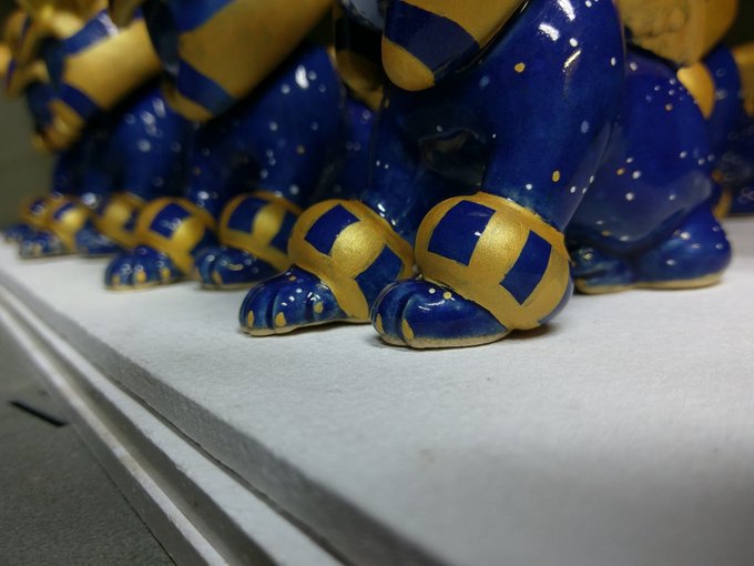 アトムキャットキャット達、やっとこ窯に入れました🐈🐈!! 無事焼き上がったら少し落ち着いた色合いになる予定です。 #wf2020w #手塚治虫 #アトムキャット #真空土練鬼