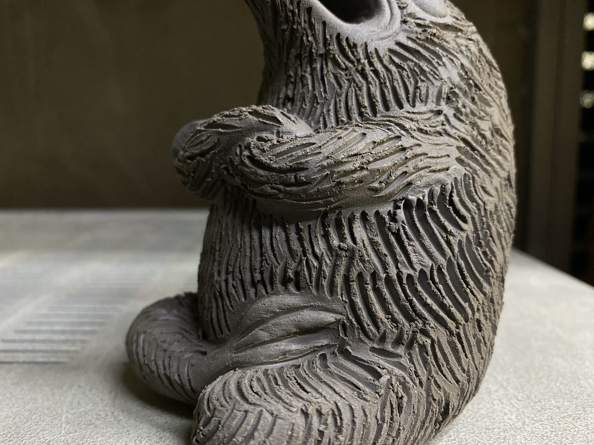 すねこすり(悪魔くん)、普段シーサーを作ってる職人さんに毛を入れてもらいました。カッコいい これから目と牙と爪を入れます。 #WF2020w