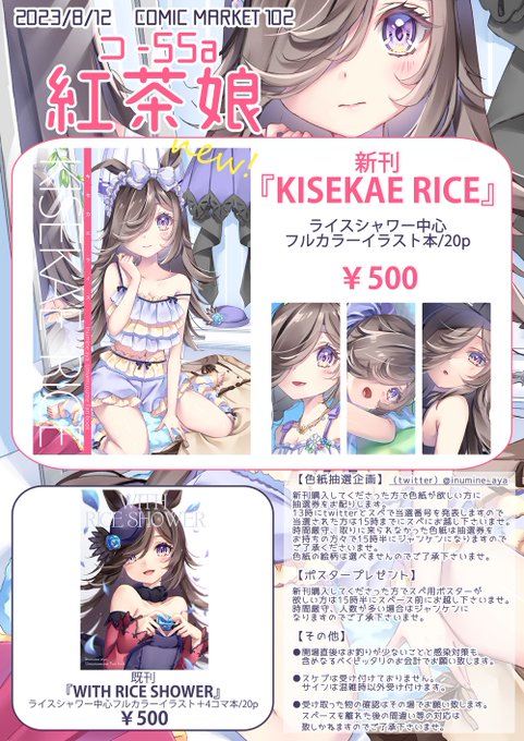 #C101 冬コミのお品書きになります! 12/30(金) 西1ホール・ふ-25a『紅茶娘』です! 新刊は大好きなライスちゃんと色んなウマ娘ちゃんとのフルカラー日常イラスト4コマ本です✨グッズも可愛くできたので是非お手に取っていただけたら嬉しいです🙏✨ 🍈様→melonbooks.co.jp/detail/detail.…