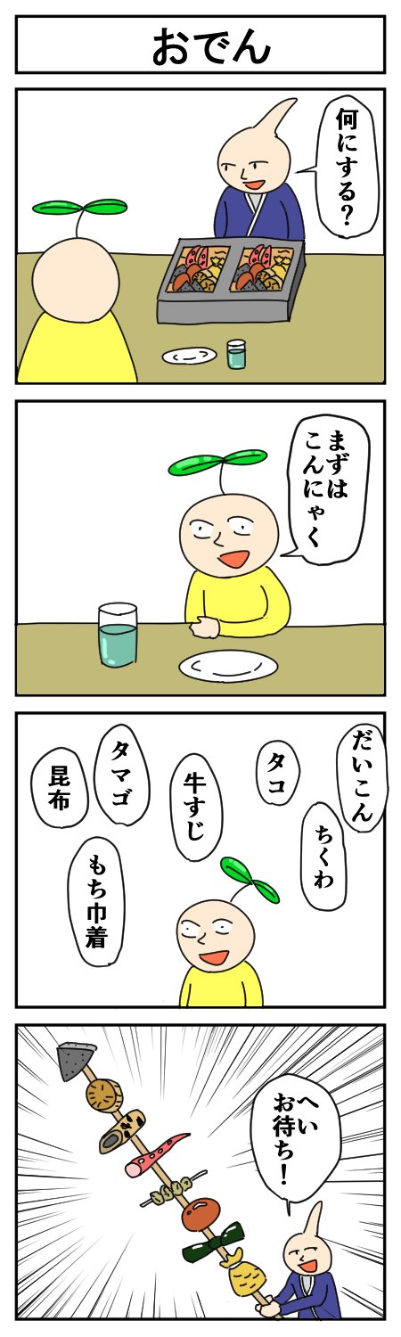 おでん #4コマR #4コマ漫画 #漫画が読めるハッシュタグ #はっぱとのどちんこ