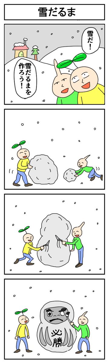 雪だるま #4コマR #4コマ漫画 #漫画が読めるハッシュタグ #はっぱとのどちんこ
