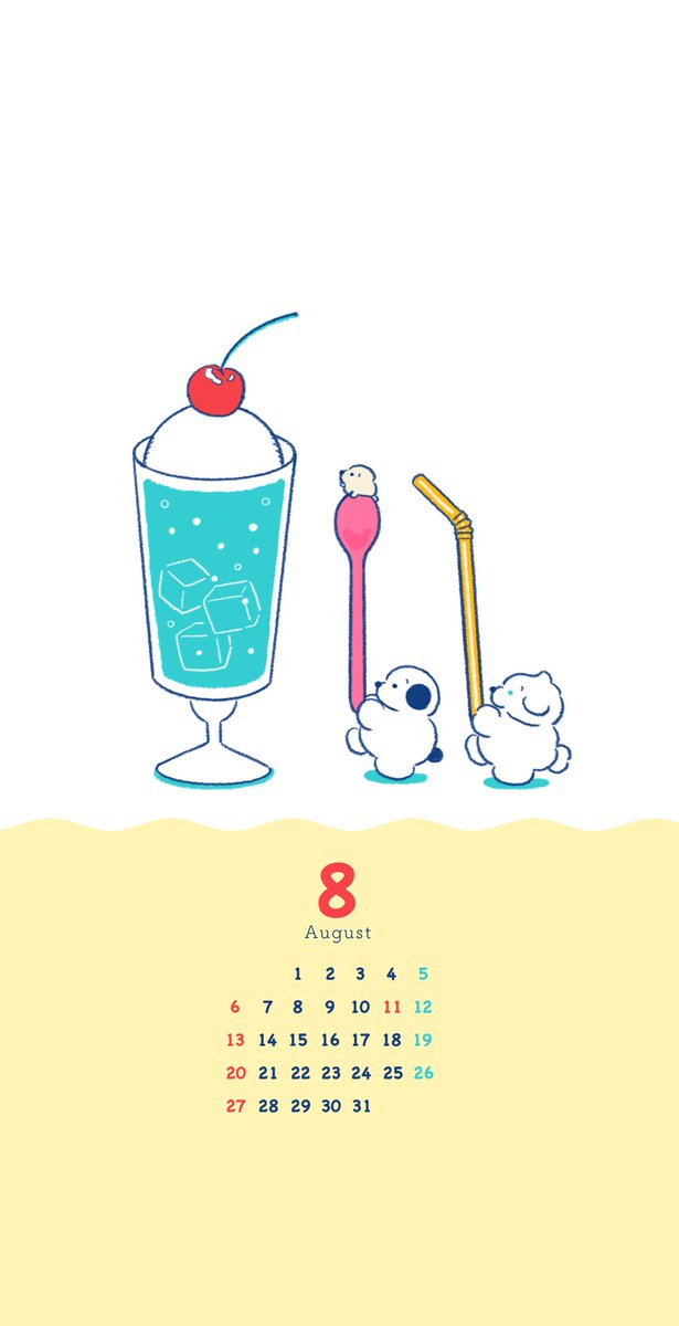83 757 8月のカレンダーを描きました🍹🐶よろしければ個人利用の範囲でお楽しみください! 23/08/01 13:34