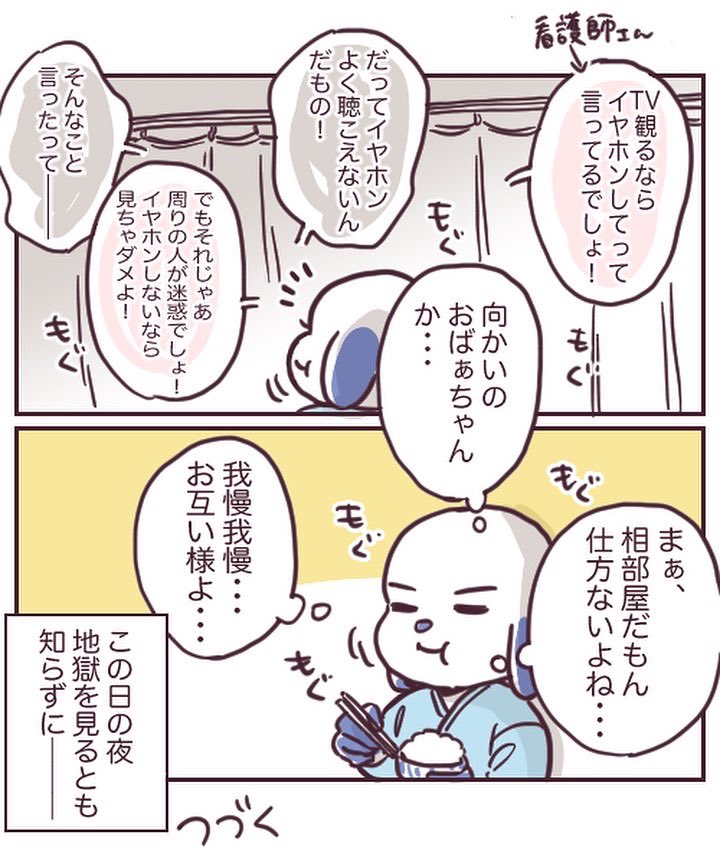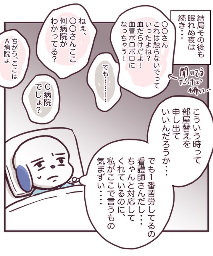 チョコ嚢シリーズ🍫32 まじで部屋を移動するか迷った・・・ でもこういう場合って、移動した方が追加料金を払わなきゃならないって聞いたことあるし(腑に落ちない) 看護師さんも出来る限り頑張って対応してくれてたし グッと堪えた手術前夜でした #漫画が読めるハッシュタグ #チョコレート嚢胞