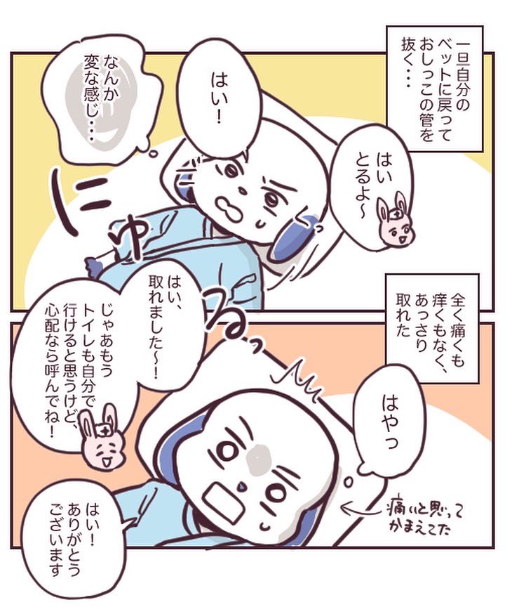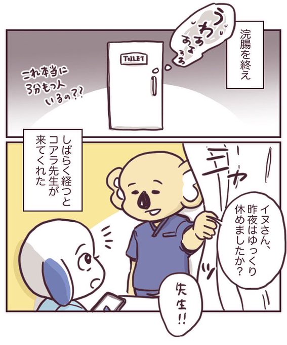 チョコ嚢シリーズ🍫28 看護師さんからしたら見慣れた光景なんでしょうね・・・ でも、この体制・・・笑 この後ゴリさんにめっちゃLINEしました笑 あと保湿剤は沢山持っていこう! #漫画が読めるハッシュタグ #チョコレート嚢胞