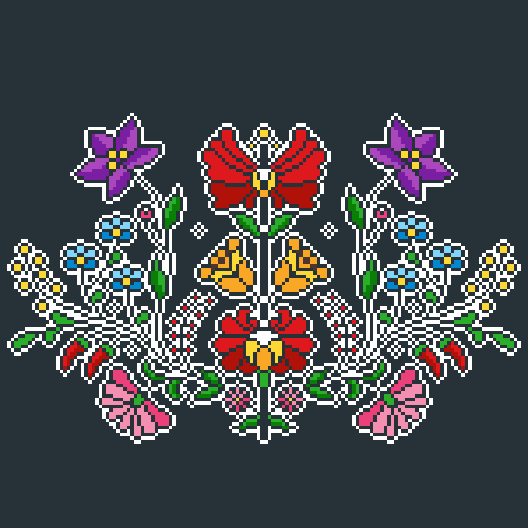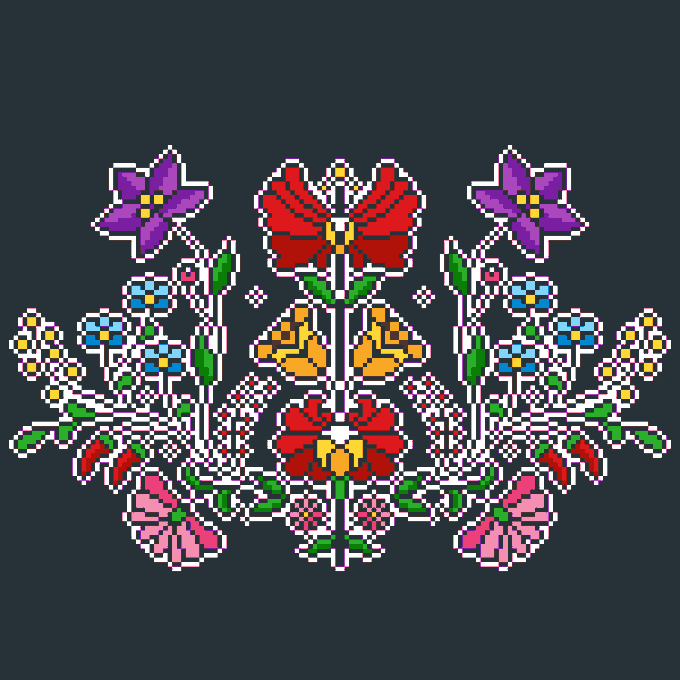 Finally made a piece I'd be procrastinating on making! Kalocsai is so so pretty. #pixelart #pixelartist #aseprite #ドット絵 #floralart