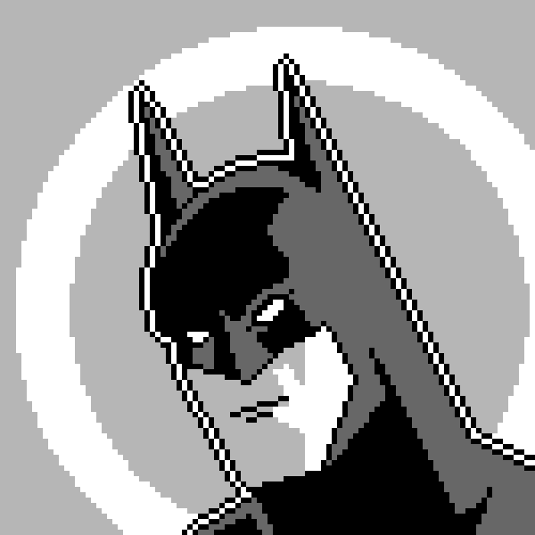 #Batman for #pixel_dailies in 4 color greyscale! Ref is from Long Halloween. #pixelart #pixelartist @Pixel_Dailies #ArtistOnTwitter #aseprite #ドット絵