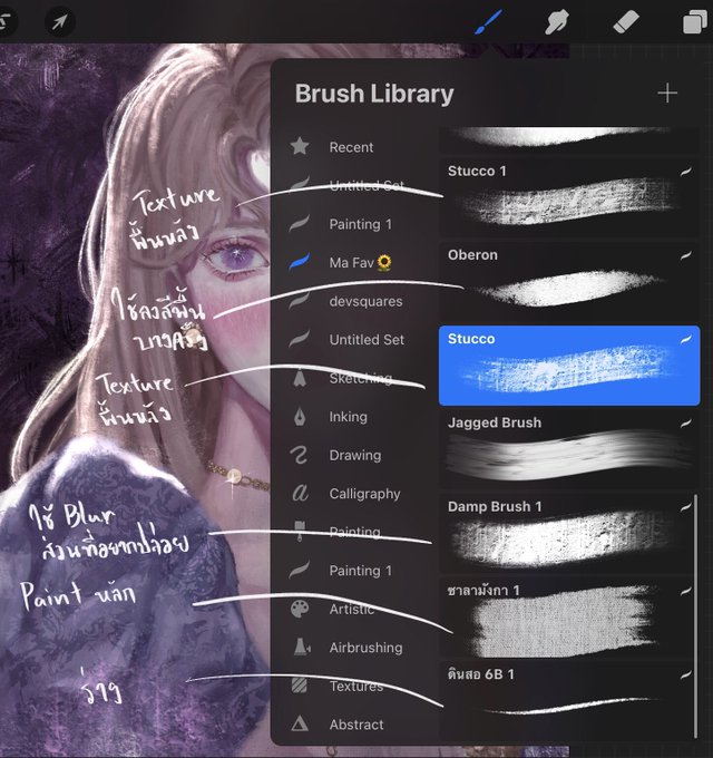 อันนี้เป็นเซ็ตบรัชที่เราใช้ประจำทุกงานเลยค่ะ ติดมากับโปรแกรมโปรครีเอตทุกอันเลยยย(ถ้าหาไม่เจอส่วนใหญ่บรัชจะอยู่ในหมวดPaintingค่ะ) twitter.com/p13tty/status/…