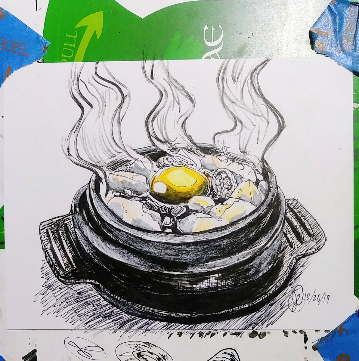 Day 25 tasty: have been at the same soft-tofu place and wanted to give some love to 1 of my many favorite foods #순두부찌개 #softtofu #Inktober2019 #inktoberday25 #inktobertasty #Koreanfood #foodart