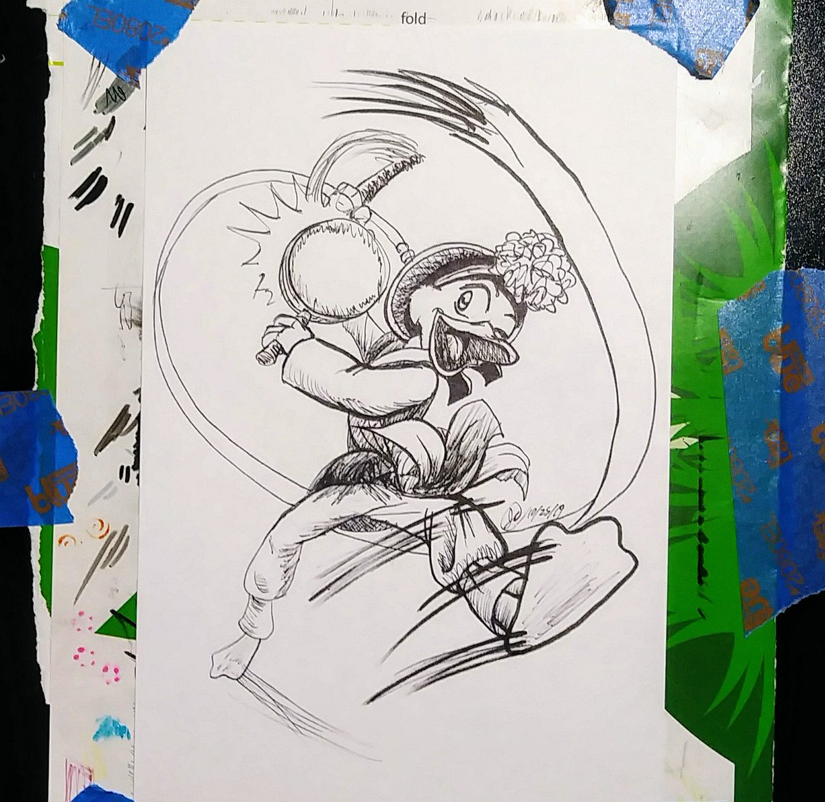 Day 24 Dizzy: Pungmul dancer. The dangling streamer on their hats are such fun to watch. Makes me wonder if they get dizzy keeping that streamer twirling. #Inktober2019 #inktoberday24 #inktoberdizzy #pungmul #koreandance #풍물 #상모놀이 #ducks