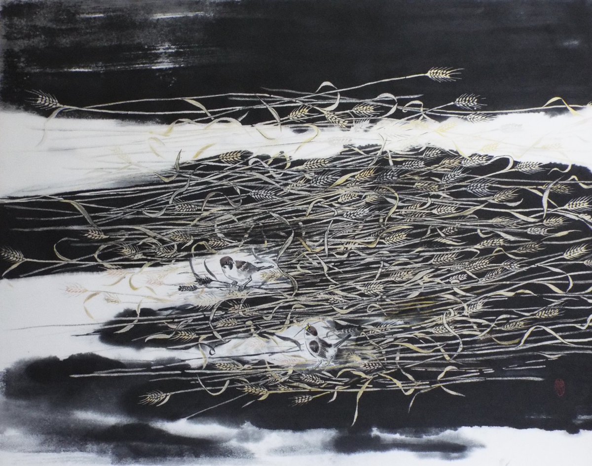涼風の頃 Cool breeze F30号 727mm×909mm 2021年に旭市長賞を受賞したときのものです。 1つだけ柿を写実してます(*^^*) #絵描きさんと繋がたい #夏の創作クラスタフォロー祭り #絵柄が好みっていう人にフォローされたい