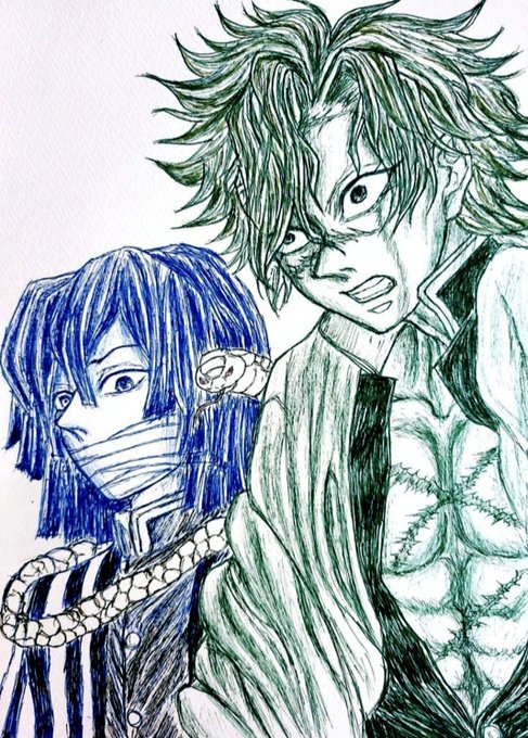 #今月描いた絵を晒そう (ざっと紹介) 新年のご挨拶絵(ツーショ二種 🍃単体)🍃と、🍃🌊単体 相互様絵のリメイク リクエストで描いた絵 五ii条先ii生初描き あと、特に思い入れある二枚 (現代👹さつ🍃と🍉) 先月からのシークレット絵も あるけど頑張った!! 来月も宜しくお願いします(*^-^*)