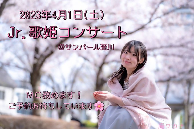4月1日(土) 『Jr.歌姫コンサート』にて MCを務めます!!!✨🎤✨ 本日よりチケットご予約スタート!💫 皆さまお見逃しなく〜!!!😆🌟 会場🎫 tiget.net/events/223629 配信🎟 twitcasting.tv/koakutsu022819… ※配信ご予約は庵の枠もございます…! どうぞよろしくお願いします…! twitter.com/koakutsu022819…