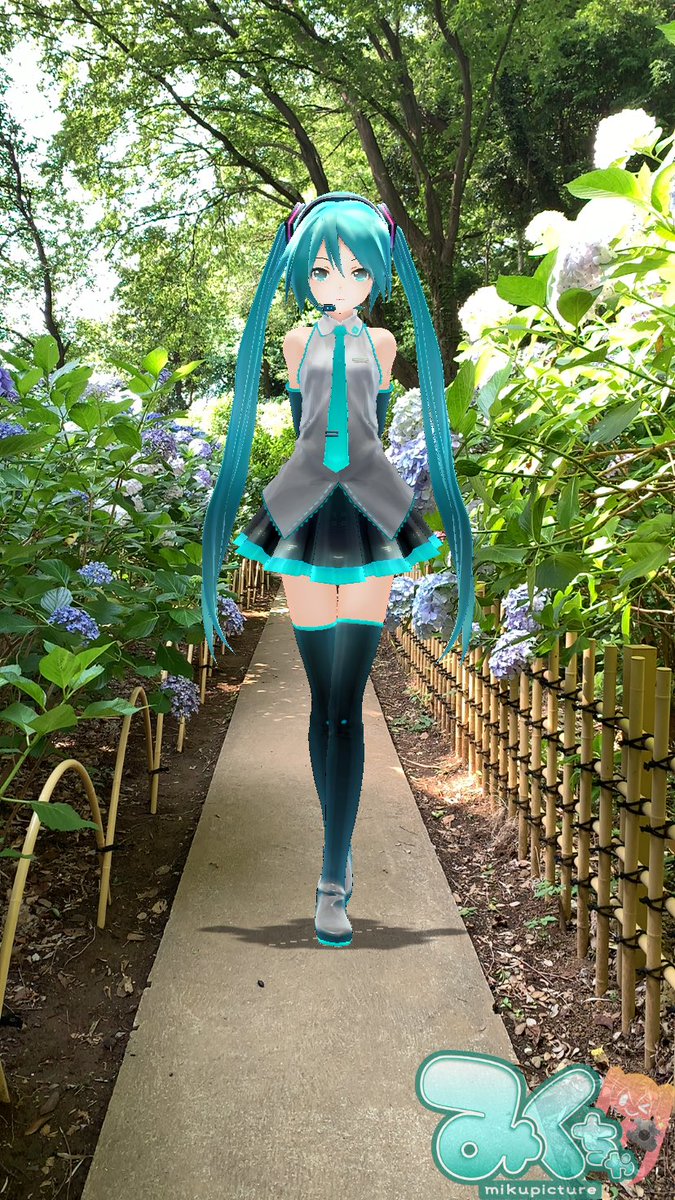 #深夜の初音ミク撮影60分一本勝負 5/17のお題【道】 紫陽花の咲く散策路 #みくちゃ