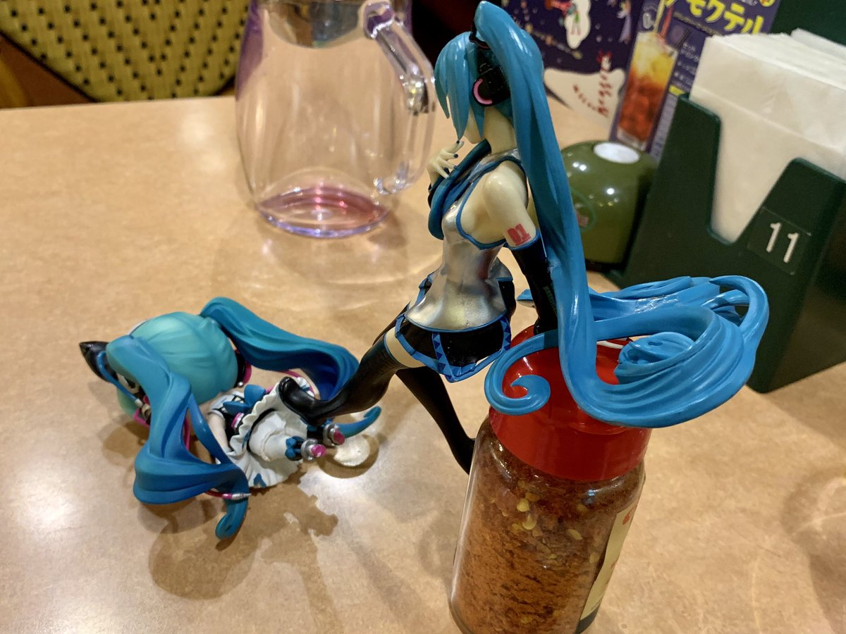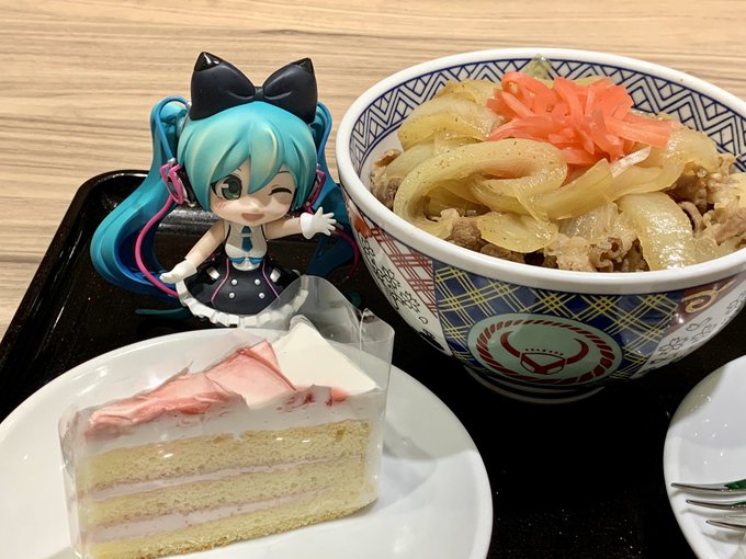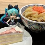 5 47 #深夜の初音ミク撮影60分一本勝負 2/11のお題【おしえる】 吉野家でケーキが食べられることを幕張ちゃんにおしえてしまった……💦 21/02/11 23:56
