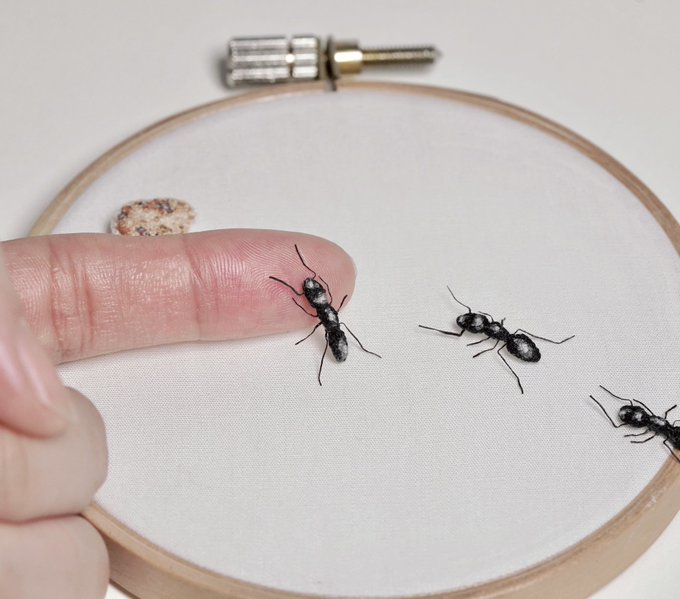これはシュトーレンを狙うアリさん。 #フレンチノット刺繍