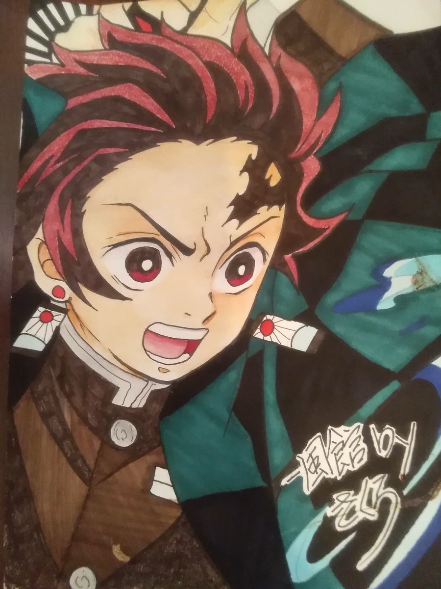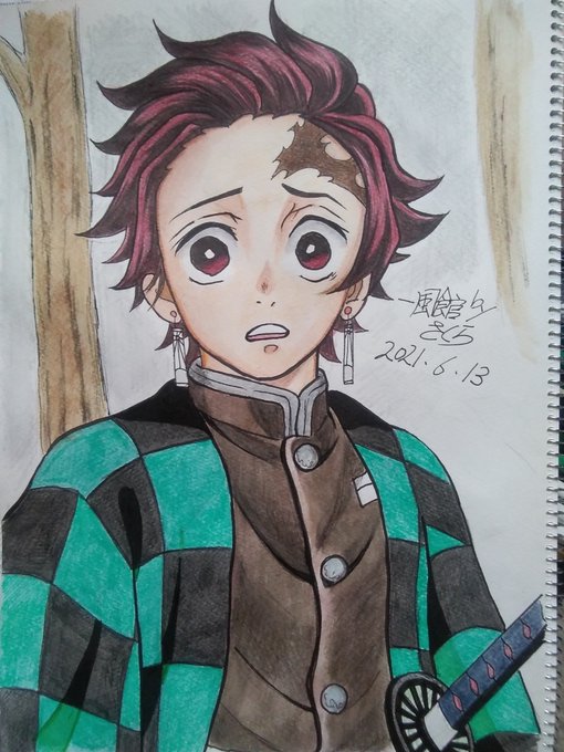 柱ばかり描いていたので、久しぶりに主人公.炭治郎を描いてみました❤ 写メ画像なので、写りはご容器を。 #鬼滅の刃 #鬼滅の刃イラスト #竈門炭治郎 #絵描きさんと繋がりたい #色鉛筆イラスト #アルコールマーカー