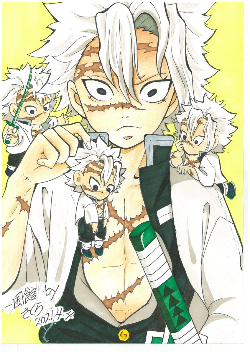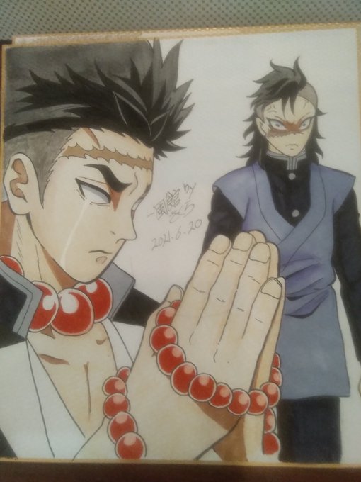 岩柱・悲鳴嶼行冥推しだという友人の息子さんに、無限列車編の悲鳴嶼行冥さんを描いてプレゼントしました。弟子の玄弥くんも一緒❤ #鬼滅の刃 #鬼滅の刃イラスト #鬼滅の刃無限列車編 #鬼滅の刃絵描きさんと繋がりたい #色鉛筆イラスト #悲鳴嶼行冥 #不死川玄弥