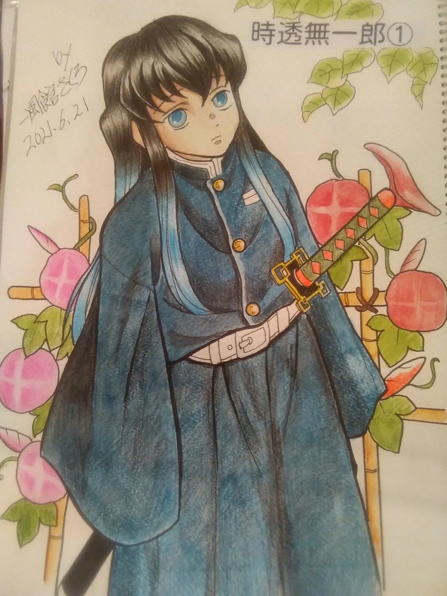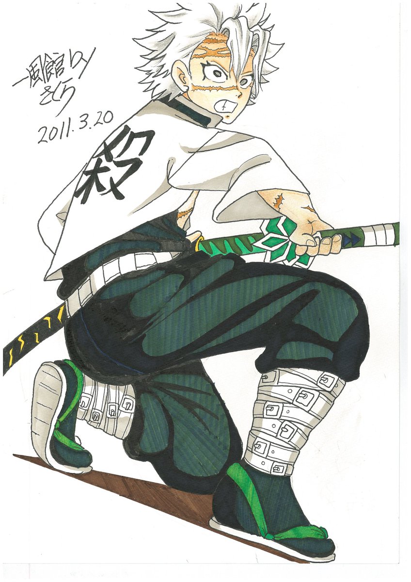 さねみん何度も描いているけど、背中見せはまだないかも。てことで、背中見せ風の呼吸! #鬼滅の刃 #鬼滅の刃イラスト #不死川実弥 #絵描きさんと繋がりたい #色鉛筆イラスト #アルコールマーカー #鬼滅の刃好きさんと繋がりたい