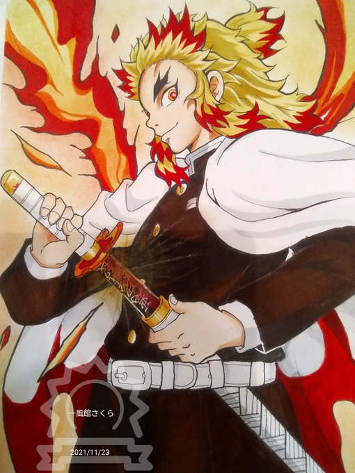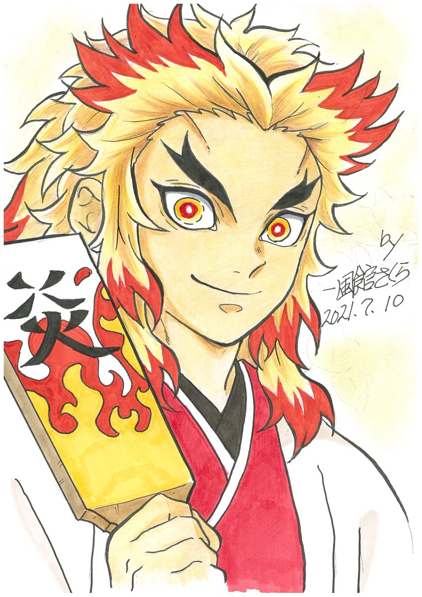 もうすぐお昼🍜 もう夏なのに、お正月イラストで失礼します🙏 無限列車編年賀イラストを、模写しました。 #鬼滅の刃 #鬼滅の刃イラスト #鬼滅の刃無限列車編 #鬼滅の刃絵描きさんと繋がりたい #色鉛筆イラスト #煉獄杏寿郎