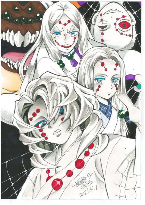おはようございます🐓☀️ 懐かしの那田蜘蛛ファミリーを、描いてみました。 (;-ω-)ウーン……夢で魘されそう……💦 #鬼滅の刃 #鬼滅の刃イラスト #累 #那田蜘蛛山編 #絵描きさんと繋がりたい #色鉛筆イラスト #アルコールマーカー