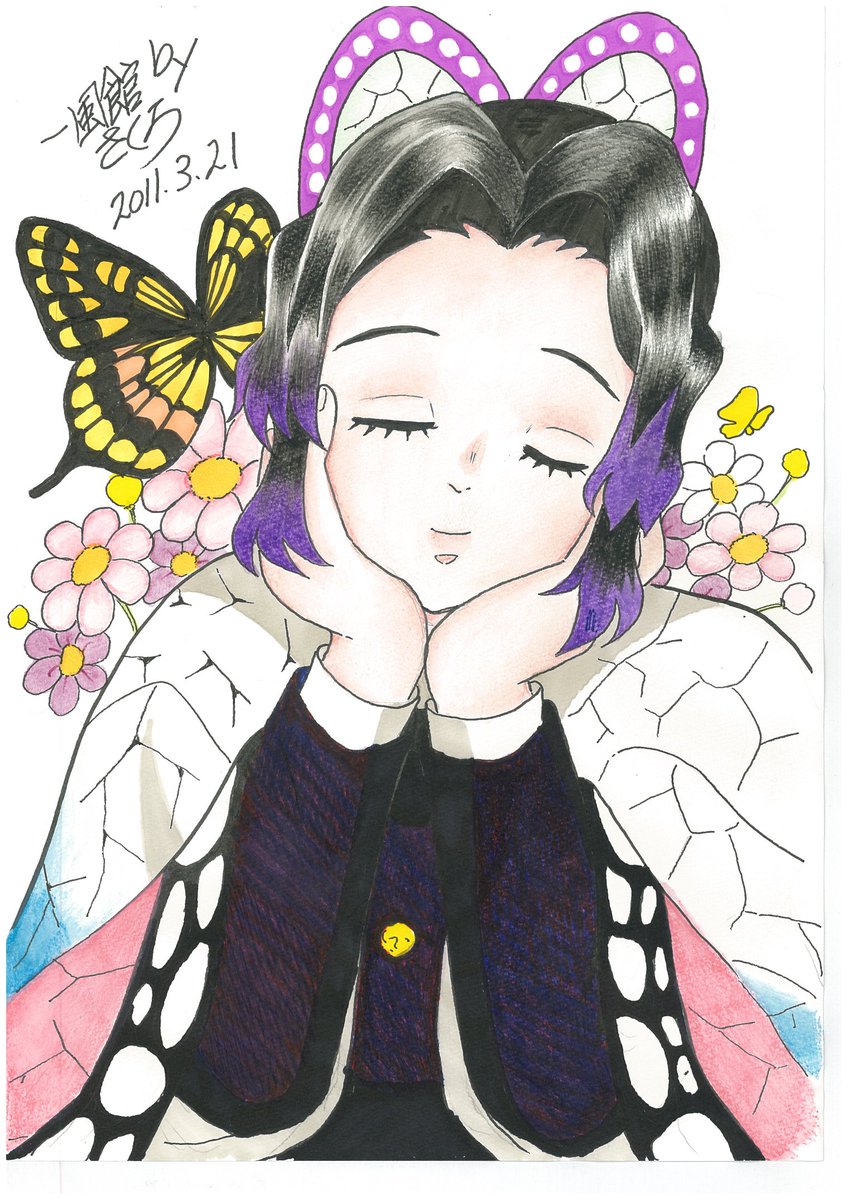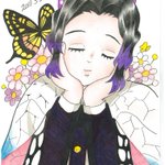 お早う御座います🌄 おとなの塗り絵風な、しのぶさんを描いてみました❤ #鬼滅の刃 #鬼滅の刃イラスト #胡蝶しのぶ #絵描きさんと繋がりたい #色鉛筆イラスト #アルコールマーカー #鬼滅の刃絵描きさんと繋がりたい