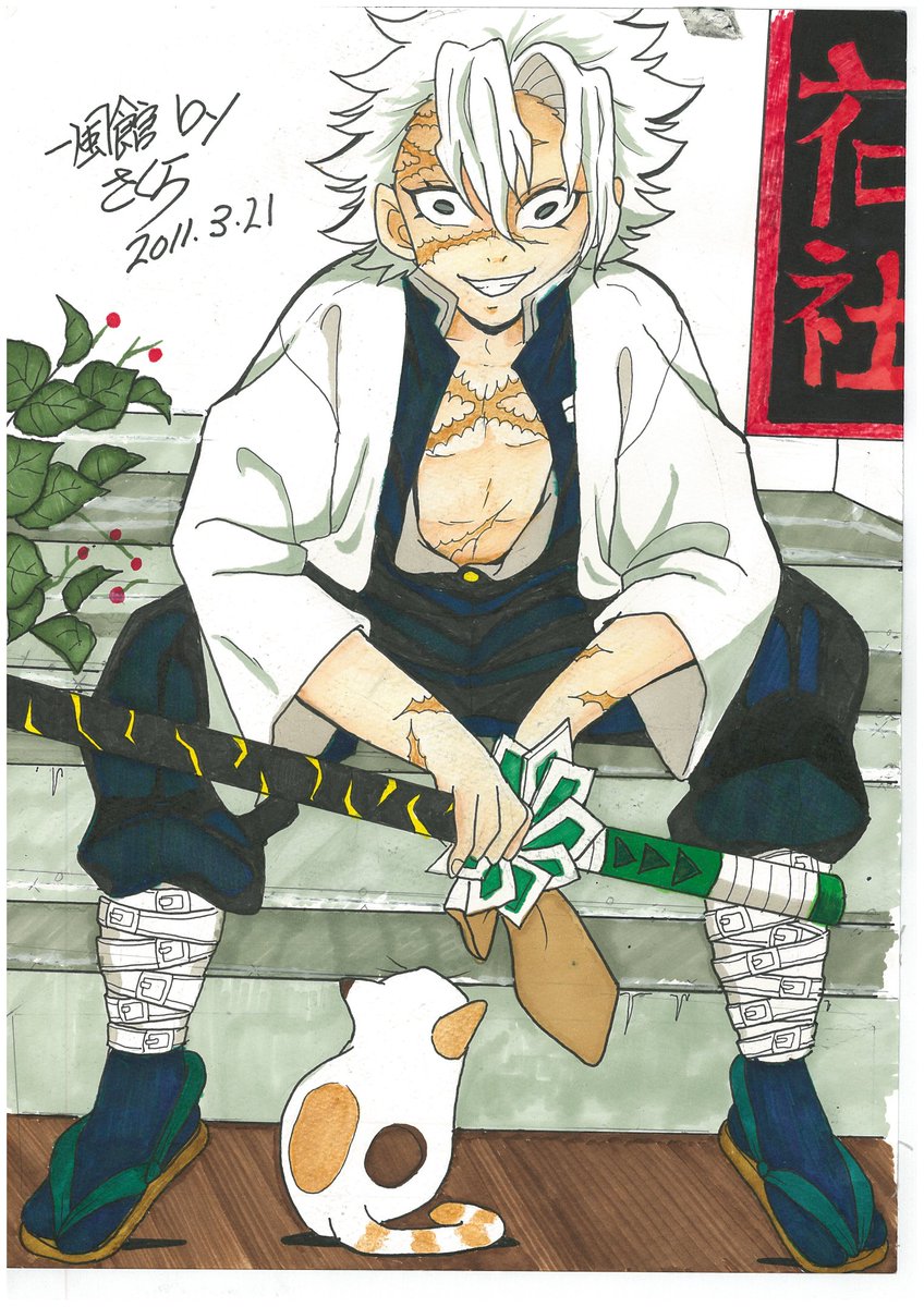 さねみんこと、風柱・不死川実弥本日2枚目。 背景の階段は少し失敗しましたが、ニャンコとさねみんを描いてみました❤ 二次創作です。 #鬼滅の刃 #鬼滅の刃イラスト #不死川実弥 #絵描きさんと繋がりたい #色鉛筆イラスト #アルコールマーカー #鬼滅の刃絵描きさんと繋がりたい