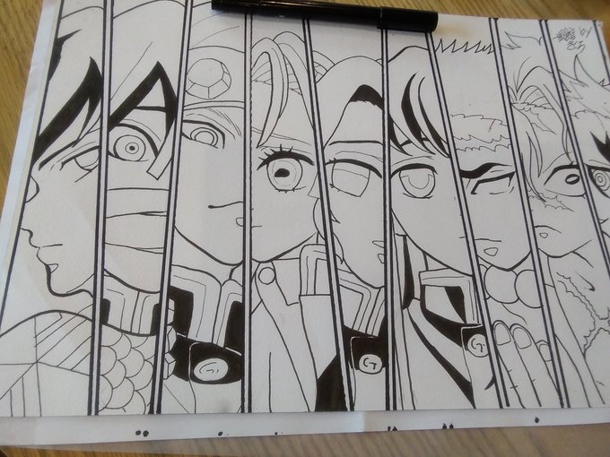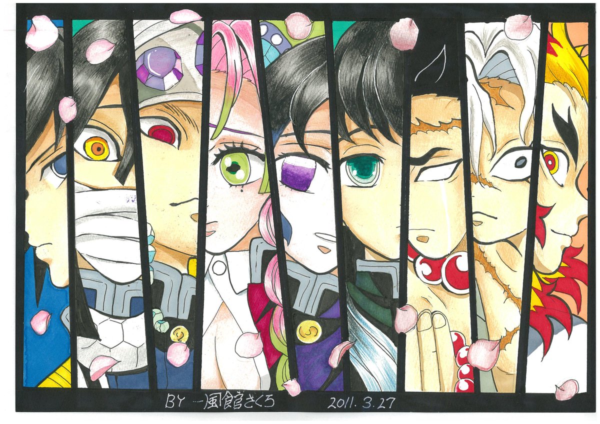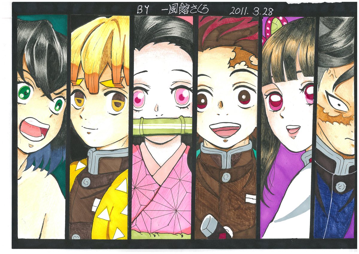 おはようございます🌄 久しぶりにかまぼこ隊を描こうと思い、鬼殺隊同期組を一枚にまとめて描いていてみました❤ #鬼滅の刃 #鬼滅の刃イラスト #鬼殺隊 #絵描きさんと繋がりたい #かまぼこ隊 #アルコールマーカー