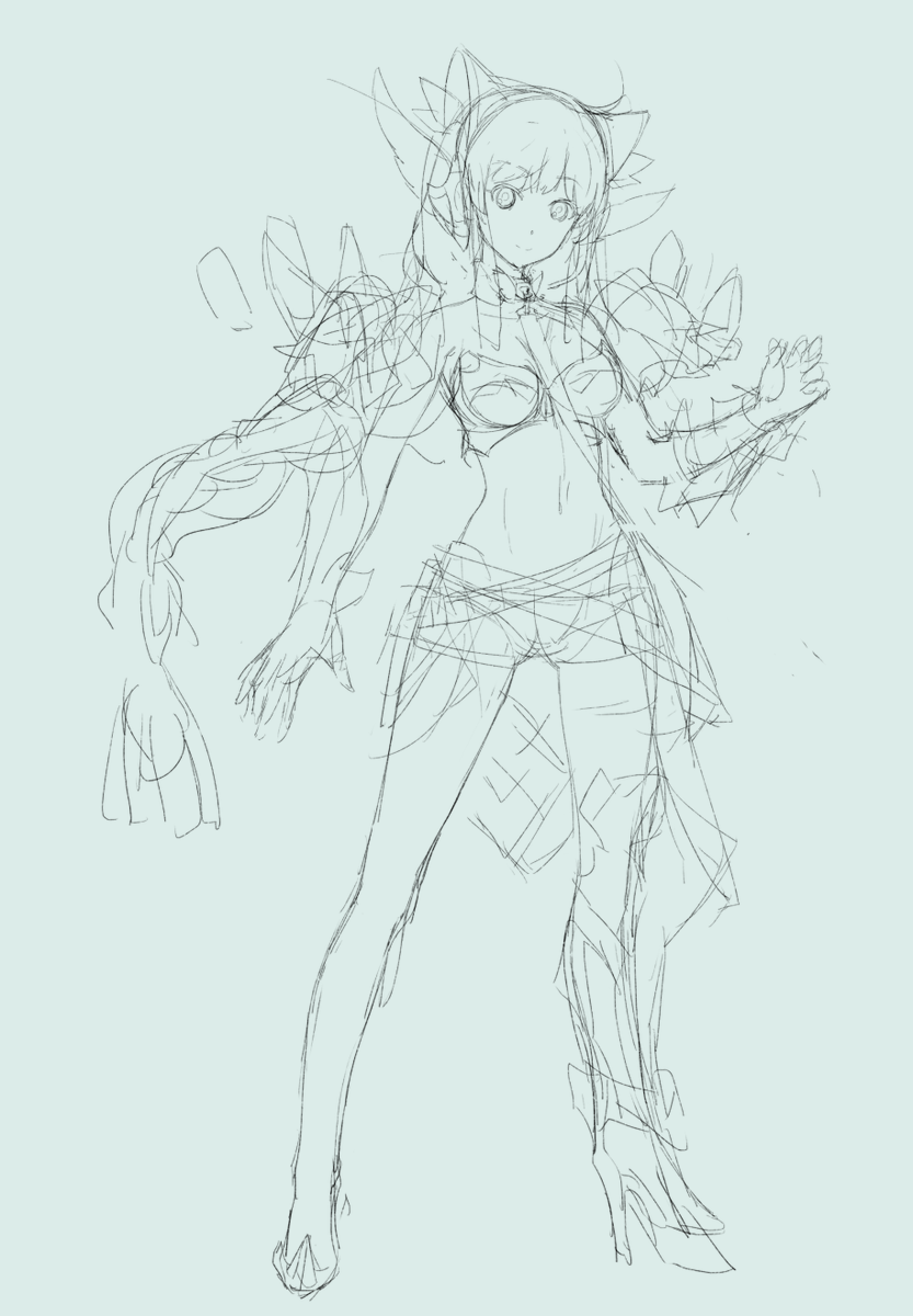 5 8 アニメクロニクルに展示されてたカイゼリンのラフデザインが炎の女皇帝のシルエットを残していてラフなのにかっこよかった。記憶を頼りに落書き。 20/11/16 22:54