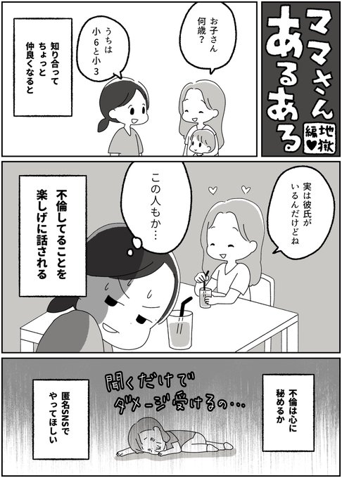 この距離感だと話しやすいのかも知れないけど不倫の話してくるのほんとにやめて… 毎回寝込むんだよ…