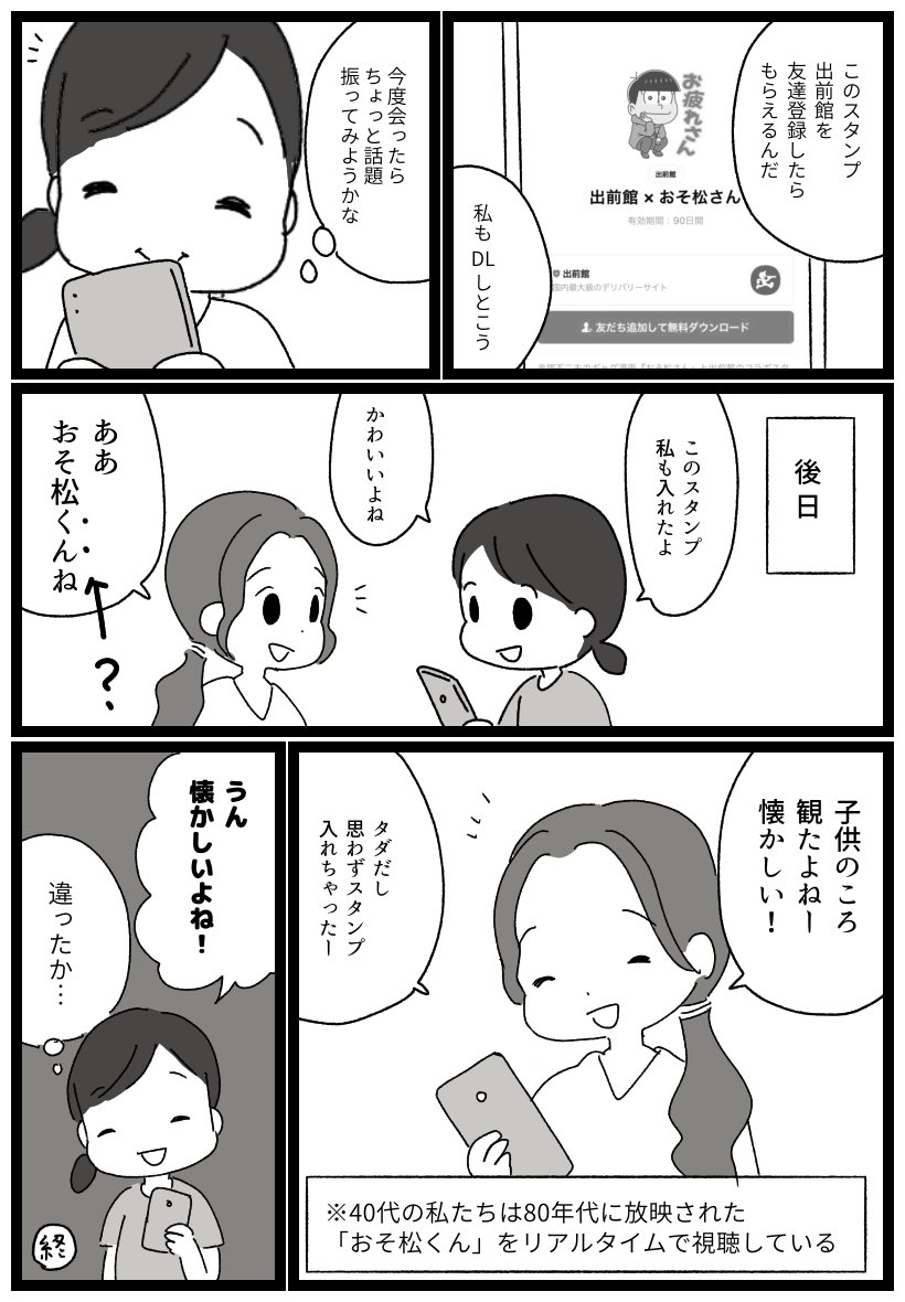 21 172 ママ友からおそ松さんのスタンプが送られてきた話 ママ友+趣味友っていたらすごく楽しいと思う! 22/08/24 14:52