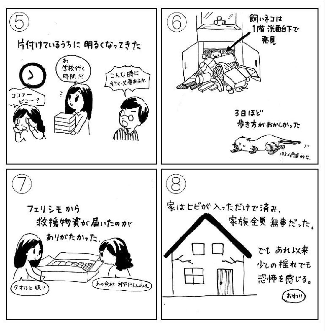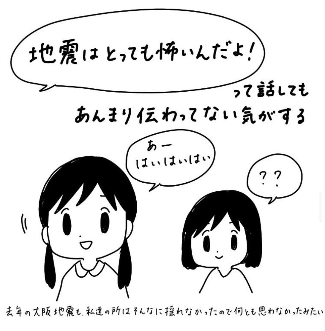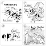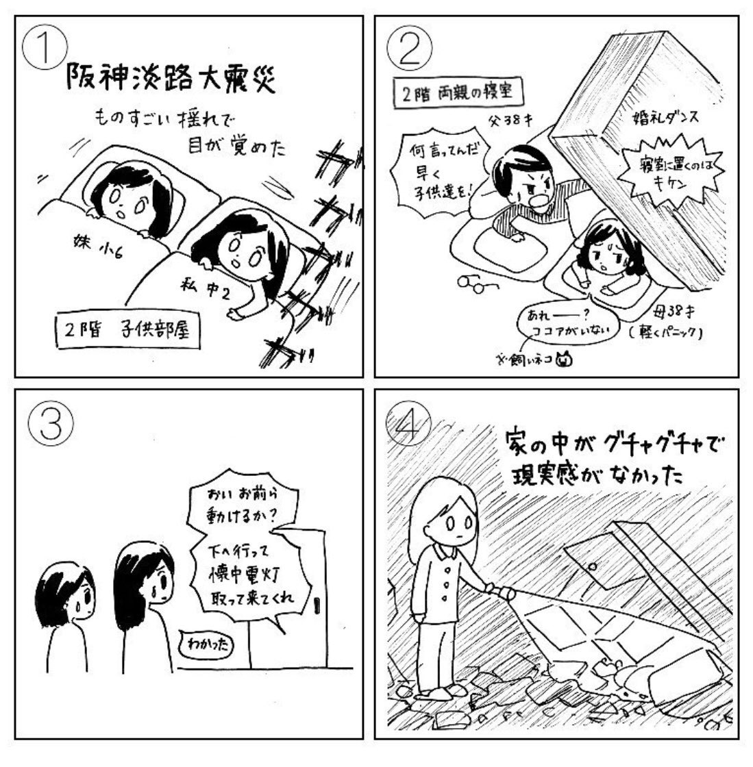 昔描いたマンガです 阪神淡路大震災 当時は尼崎に住んでました うちはこれくらいの被害で済んだけど… 3枚目の「去年の地震」は2018年の大阪北部地震のことです