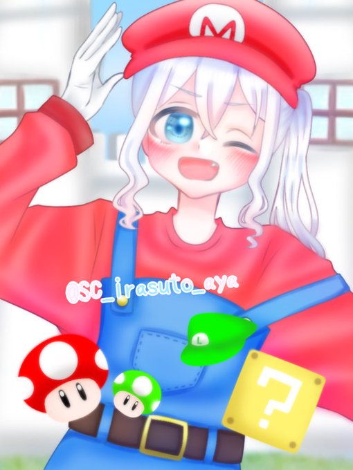 代理ちゃんにマリオの服着せてみた( ・෴・) 意外と時間かからなかった!(多分6時間ぐらいでできた) #イラスト好きな人とつながりたい #イラスト好きと繋がりたい #絵師さんとつながりたい #マリオ #代理ちゃん #可愛い #イラスト初心者 #デジタルイラスト